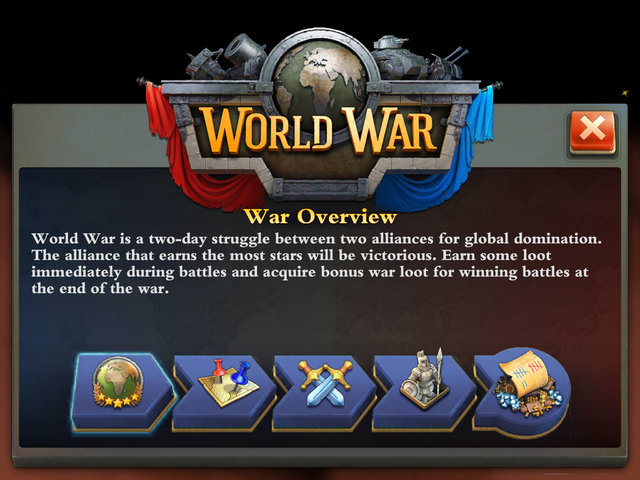 World War je časťou hry,ktorá bola pridaná v update 3.0.150. Umožňuje prezentáciu aliancie svetovou vojnou proti nepriateľskej aliancii o nadvládu na mape sveta. Zapája sa do nej od 10 členov až po 50 členov, vždy odstupňovaným výberom po 5 členoch.